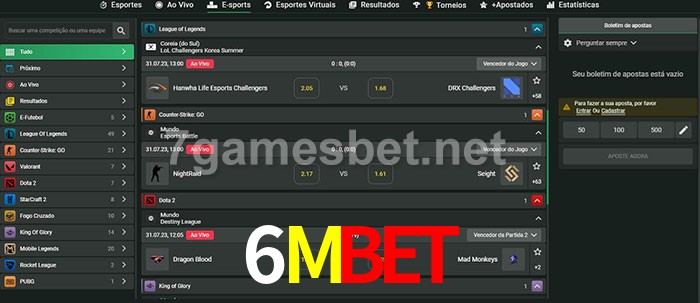 O 6Mbet oferece uma grande seleção de opções de apostas em e-sports com probabilidades competitivas
